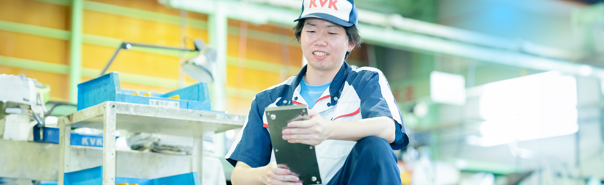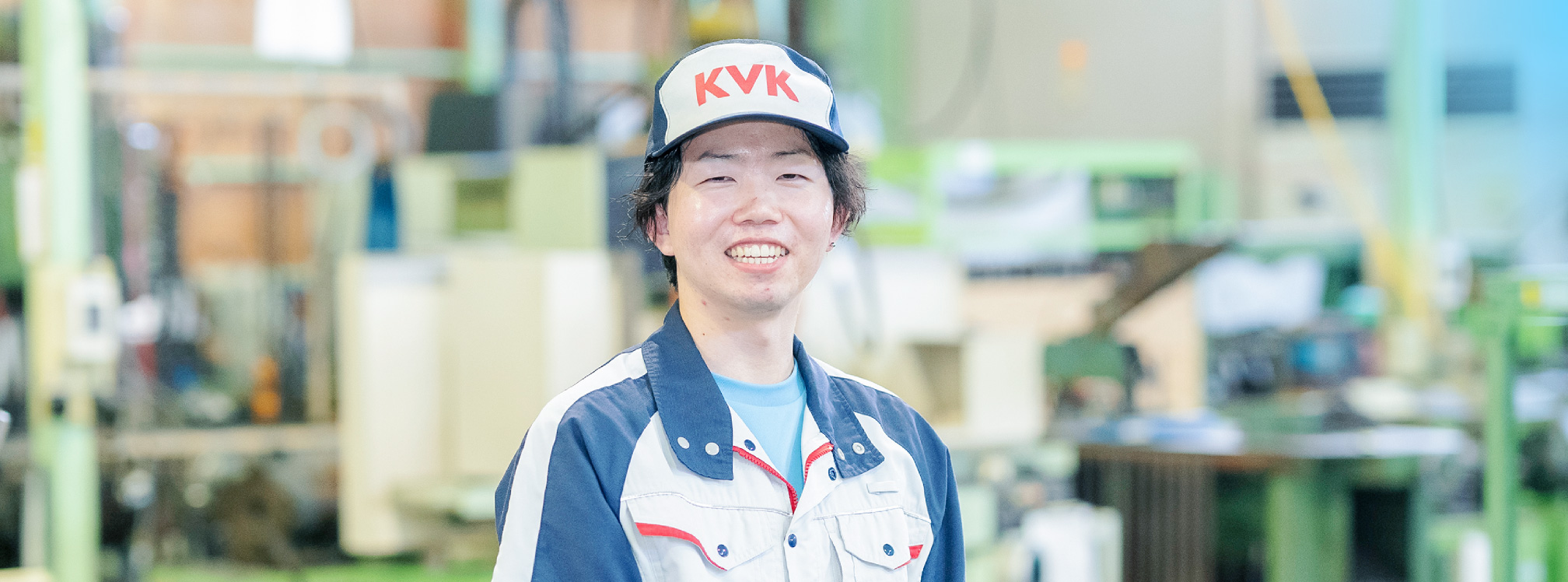じっくりと成長ができる魅力就職活動では、大学の工学部で学んでいた製図や機械設計の知識を生かせる仕事を軸にしていました。様々な企業を検討する中、KVKと出会ったのはインターンシップがきっかけです。