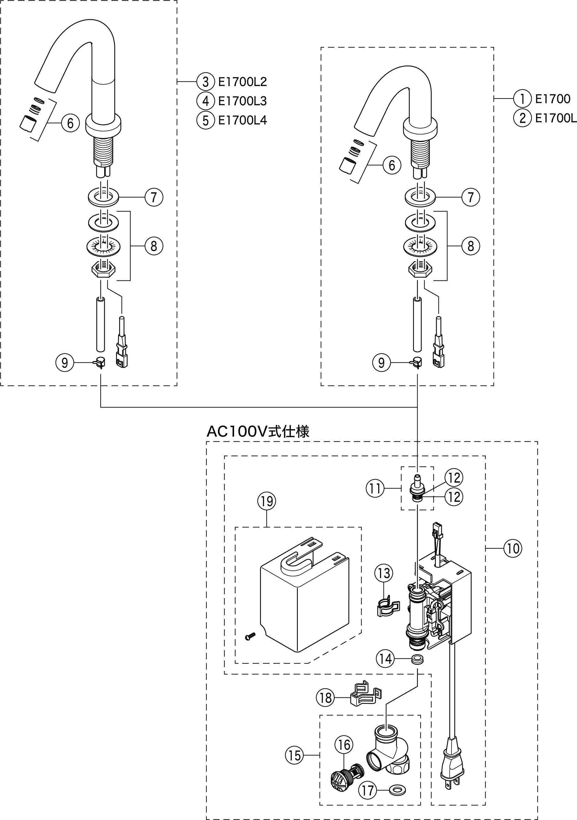 | 1~5 の吐水口ユニットを交換される際は、11 の Z420944S プラグの交換もお勧めします。 | ||||