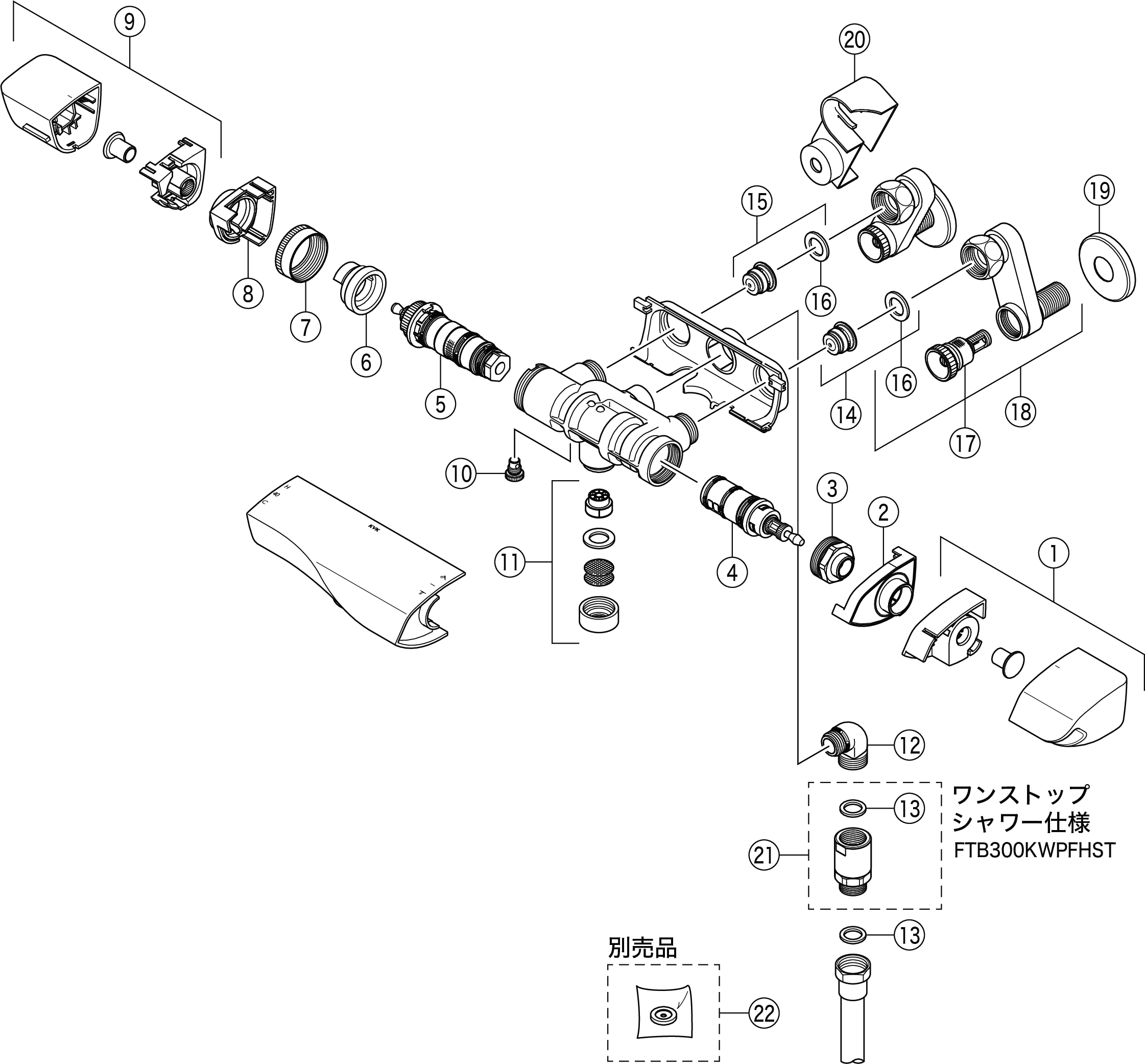 | 9 | ZK1T300THS | 温調ハンドルセット(撥水加工) メッキ |