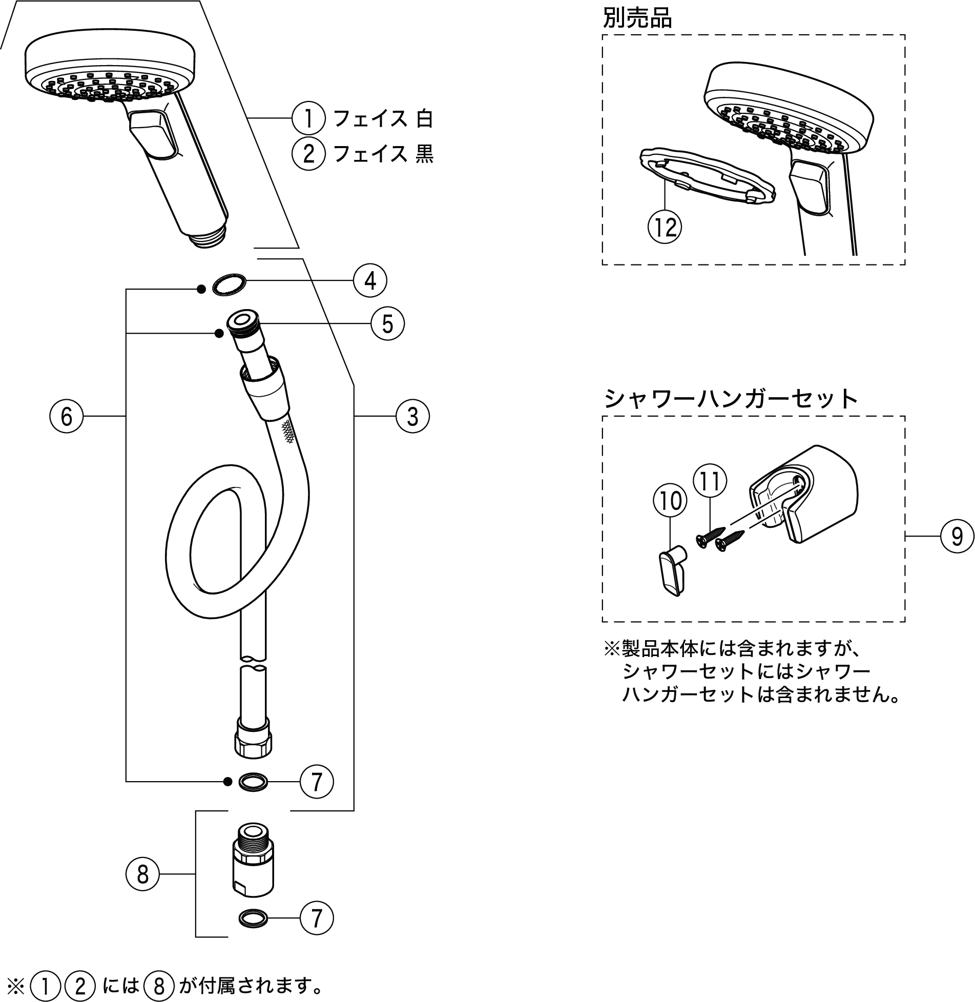 | 1 | PZS350T | ワンストップ付ワイドシャワーヘッド(減圧装置付) |